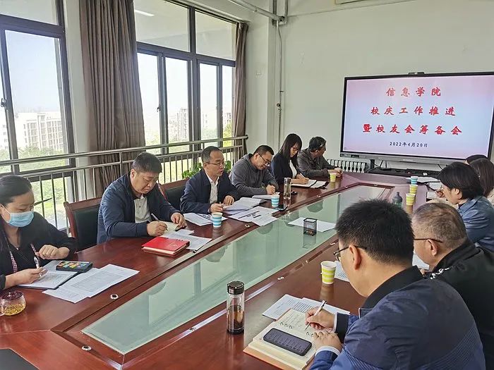 为落实我校70周年校庆工作部署要求,4月20日,信息学院召开校庆工作推进暨校友会筹备会,学院处科级干部、党委委员、系主任及骨干教师参加,会议由学院副院长杜延庆主持。