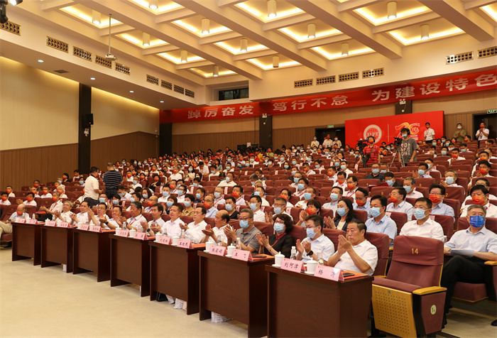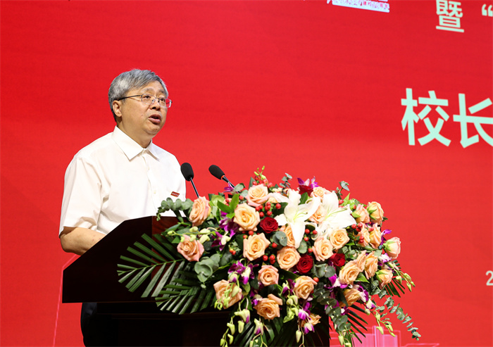 学校党委书记杨涛在主持大会时指出,1952年,学校最早源头西北贸易学校在西安老城小巷中宣告诞生。2022年的今天,举行西安财经大学建校70周年暨“双一流”建设推进会,共同回顾学校建设发展历程,总结办学经验,谋划未来发展,具有十分特殊和重要的意义。在70年的办学过程中,学校始终得到各级党政领导和上级部门的关心和指导,得到兄弟单位和社会各界人士的关爱和帮助,得到全体师生校友的信任和支持。在建校70周年来临之际,国家统计局,陕西省委、省政府,省委教育工委、省教育厅等上级部门领导,通过不同方式向学校表示诚挚祝贺,向全体师生和校友表达亲切慰问,对学校未来发展给予殷切期望。这是一份沉甸甸的贺礼,更是一股巨大的力量,激励学校不忘初心、牢记使命,继续奋勇向前。站在新的历史阶段,全体西财大人将坚持以习近平新时代中国特色社会主义思想为指导,紧紧围绕立德树人根本任务,大力发扬学校光荣传统,不断凝练办学特色,聚焦国家战略和区域经济社会发展之需,大力培养创新型应用人才,加强“一流学科、一流专业”建设,为早日建成特色鲜明高水平财经大学而努力奋斗。