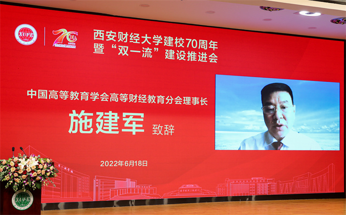 中国高等教育学会高等财经教育分会理事长施建军在视频致辞中指出,七十年来,西安财经大学顺应历史潮流,励精图治,锐意改革,跨越发展,已成为陕西省唯一一所以经济学、统计学、管理学为主干的财经类高等院校。学校办学历史悠久、学科专业特色鲜明,在陕西省高等教育中具有重要地位,为国家财经教育事业发展和西部经济社会建设做出重要贡献。作为高等财经教育分会的重要会员之一,学校多年来积极参与学会活动,支持学会工作,为发展和繁荣高等财经教育事业作出了突出贡献。相信在党的教育方针的正确指引下,在我国高等财经教育的百花园里,西安财经大学奋楫笃行,踔厉奋发,一定能够在新的历史起点,勇毅前行,再创佳绩,续写华章。