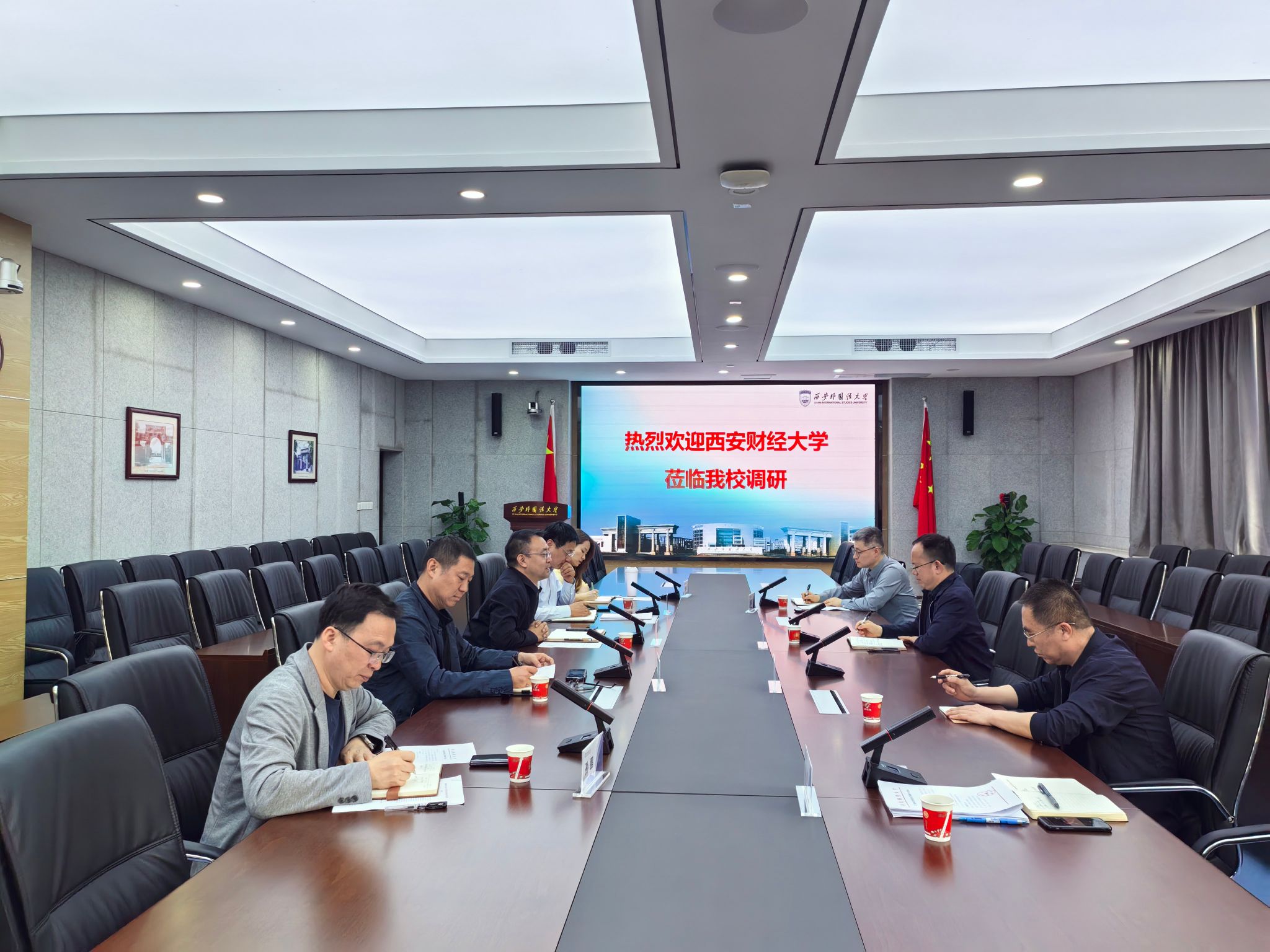 4月16日下午,副校长宁泽逵带队赴西安外国语大学,围绕“两新”项目申报、“十五五”规划编制及校园基本建设等工作开展专题学习调研。西安外国语大学副校长黄建友、发展规划与综合改革处处长高万辉、总务部部长黄利峰及相关处室负责人参加座谈交流。
