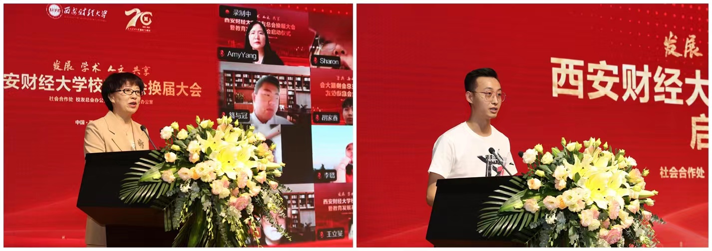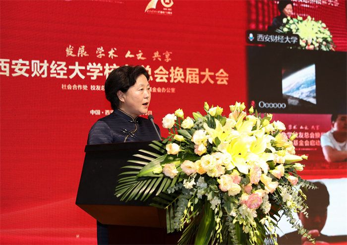 6月18日下午,西安财经大学校友总会换届大会暨教育发展基金会启动仪式在长安校区行政楼二楼报告厅举行。陕西省委原秘书长王改民校友,国家统计局青海调查总队副总队长常丽娟,广西财经学院校长夏飞,中国农业银行股份有限公司陕西省分行副行长、西安分行行长薛雷,西安旅游集团党委书记、董事长毋文利,陕西省物流集团有限责任公司纪委书记惠碧仙,秦商总会党支部书记、执行会长刘阿津,陕西莱特光电材料股份有限公司董事长王亚龙,西安市民政局齐光远,我校党委书记杨涛,校长方明,副校长李萍、李佼瑞、吴旺延,各地方校友会会长、秘书长,各学院校友会会长,校友工作领导小组成员,教育发展基金会理事会成员,关心和支持校友工作的各界爱心人士、校友代表在线上线下共同参加了大会。校友总会换届大会由副校长吴旺延主持。