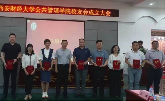 随后,李国武、严琳先后为首届理事会成员颁发聘书,并为新成立的公共管理学院校友会授旗。